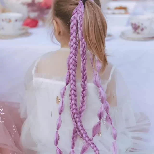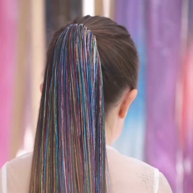 Our Colourful Ponytails are made of high-quality synthetic hair that is soft to the touch, in beautiful ombre colour variations with a sprinkle of tinsel.